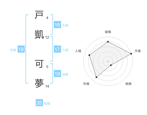 戸凱 可夢さんを姓名の画数から五運を鑑定