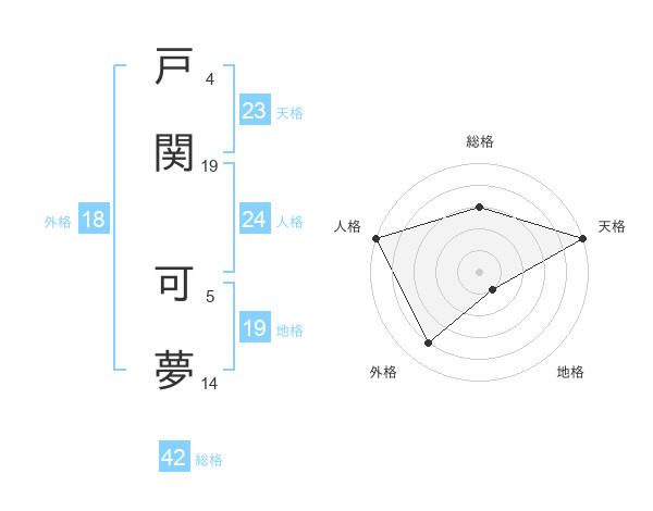 戸関 可夢さんの天格は23画の5点!