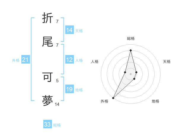 折尾 可夢さんを姓名の画数から五運を鑑定