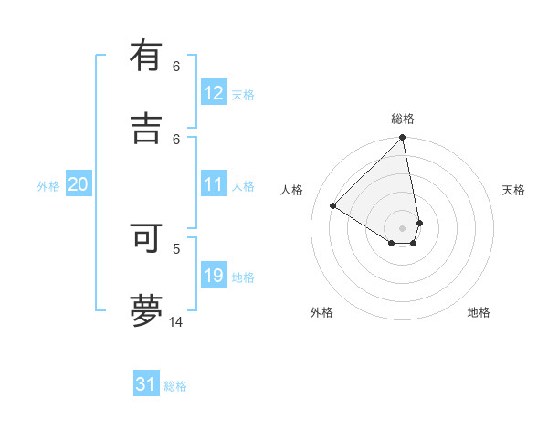 有吉 可夢さんを姓名の画数から五運を鑑定