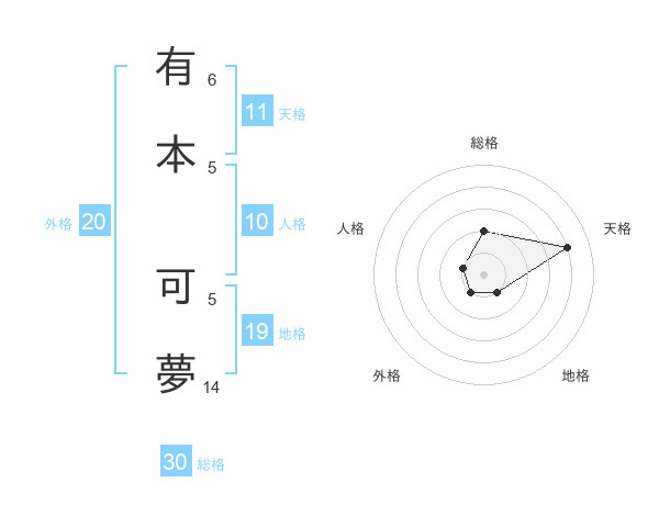 有本 可夢さんの総格は30画の2点!