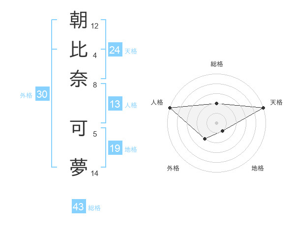 朝比奈 可夢さんの天格は24画の5点!