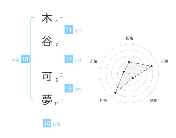 木谷 可夢さんの天格は11画の4点!