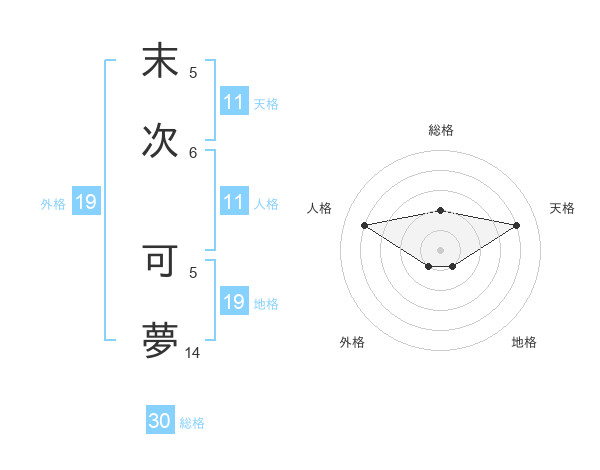 末次 可夢さんの総格は30画の2点!