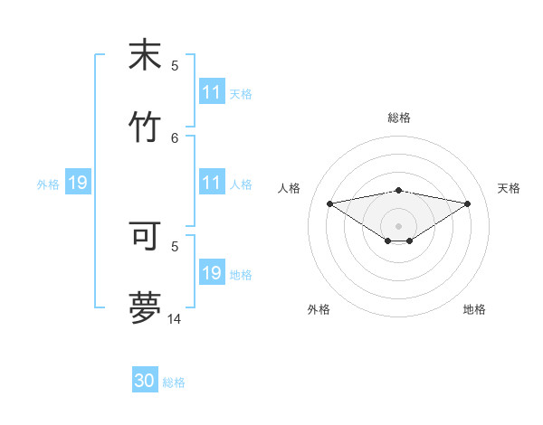 末竹 可夢さんの天格は11画の4点!