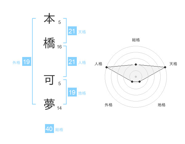 本橋 可夢さんを姓名の画数から五運を鑑定