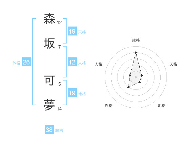森坂 可夢さんの総格は38画の4点!