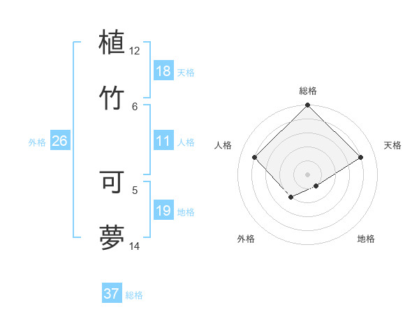 植竹 可夢さんの総格は37画の5点!