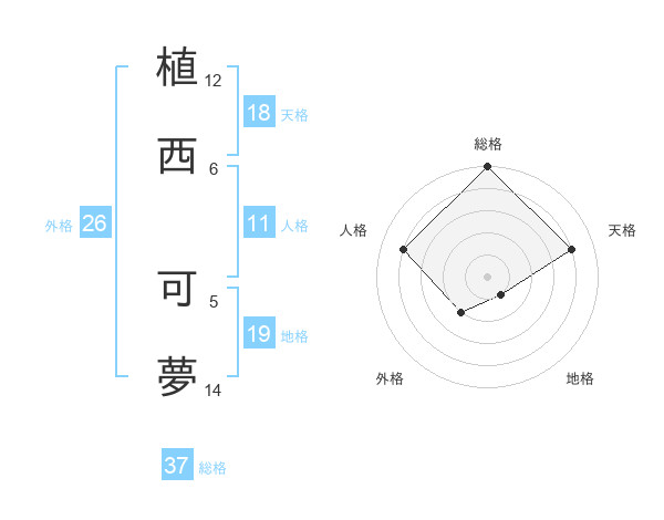 植西 可夢さんの総格は37画の5点!