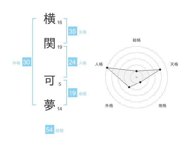横関 可夢さんの天格は35画の4点!