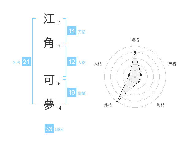 江角 可夢さんの総格は33画の4点!