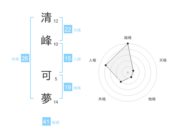 清峰 可夢さんを姓名の画数から五運を鑑定