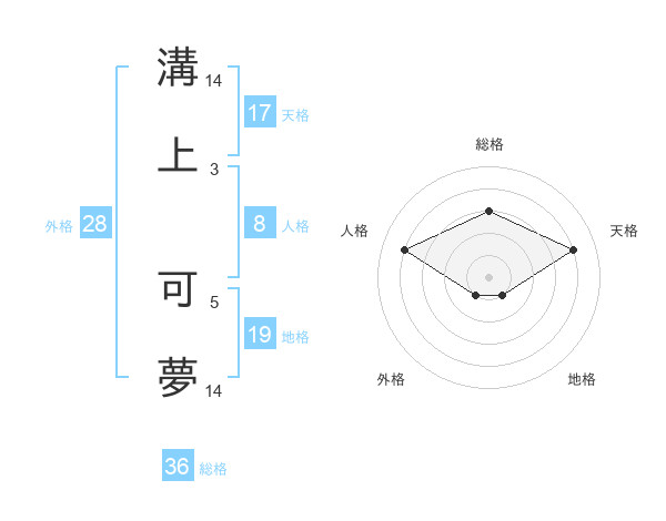 溝上 可夢さんを姓名の画数から五運を鑑定