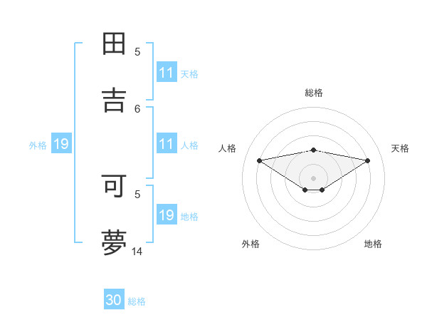 田吉 可夢さんを姓名の画数から五運を鑑定