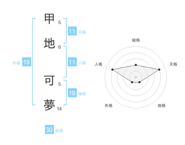 甲地 可夢さんを姓名の画数から五運を鑑定