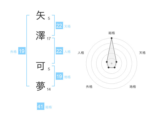 矢澤 可夢さんの総格は41画の5点!