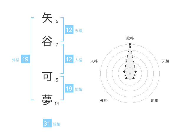 矢谷 可夢さんを姓名の画数から五運を鑑定