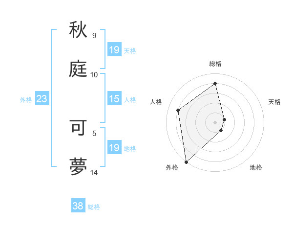 秋庭 可夢さんの天格は19画の1点!
