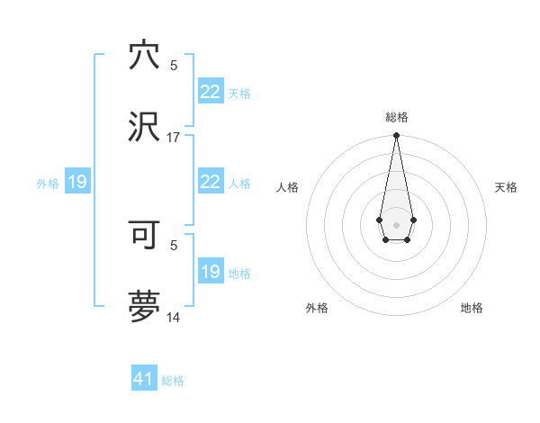 穴沢 可夢さんの総格は41画の5点!