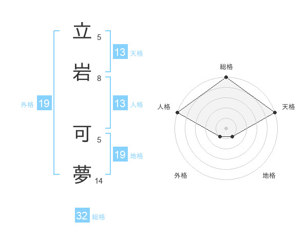立岩 可夢さんを姓名の画数から五運を鑑定