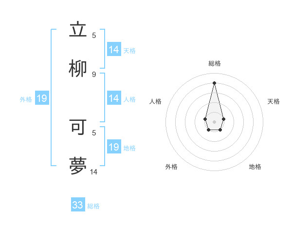 立柳 可夢さんの総格は33画の4点!