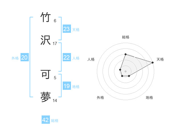 竹沢 可夢さんの天格は23画の5点!
