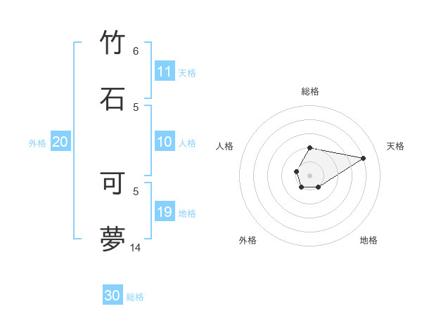 竹石 可夢さんを姓名の画数から五運を鑑定