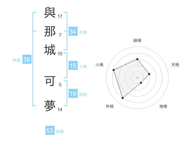 與那城 可夢さんの総格は53画の3点!