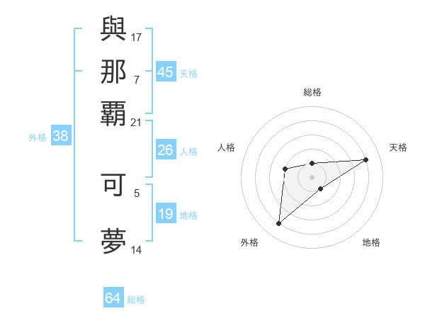 與那覇 可夢さんを姓名の画数から五運を鑑定