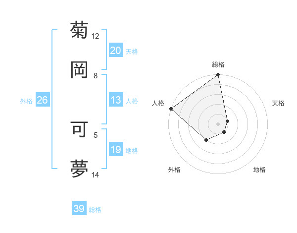 菊岡 可夢さんを姓名の画数から五運を鑑定