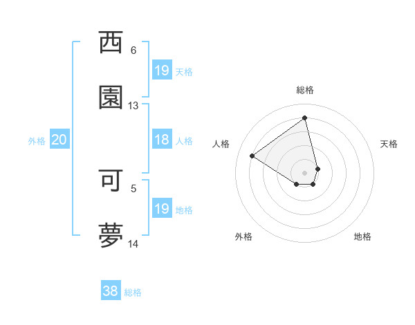 西園 可夢さんの天格は19画の1点!