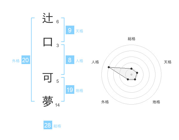 辻口 可夢さんの総格は28画の1点!
