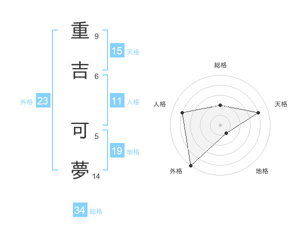 重吉 可夢さんの外格は23画の5点!