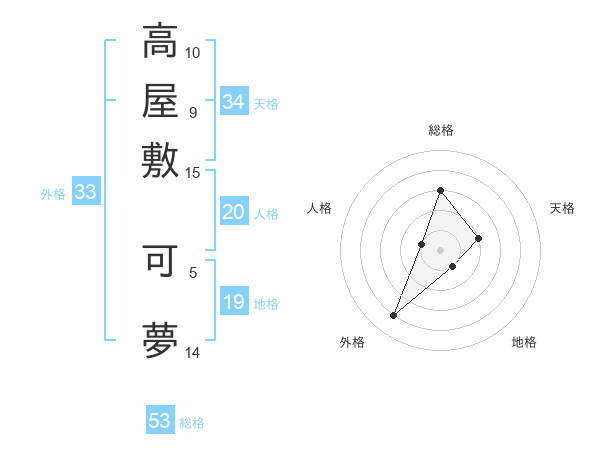 高屋敷 可夢さんの総格は53画の3点!