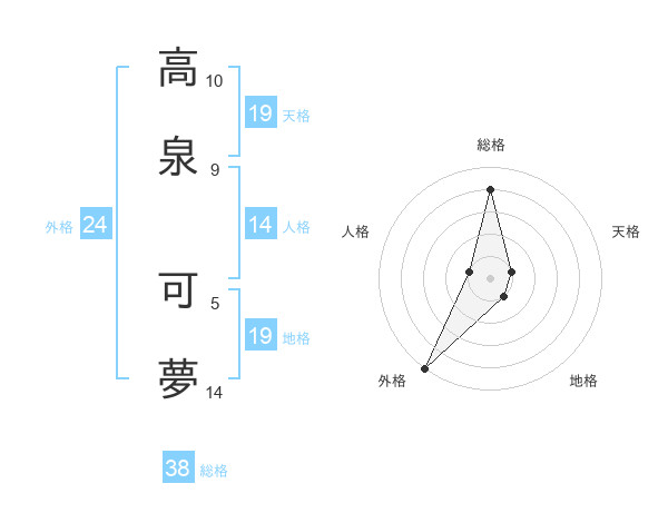 高泉 可夢さんの天格は19画の1点!