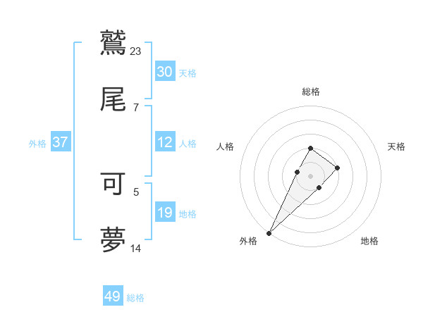 鷲尾 可夢さんを姓名の画数から五運を鑑定