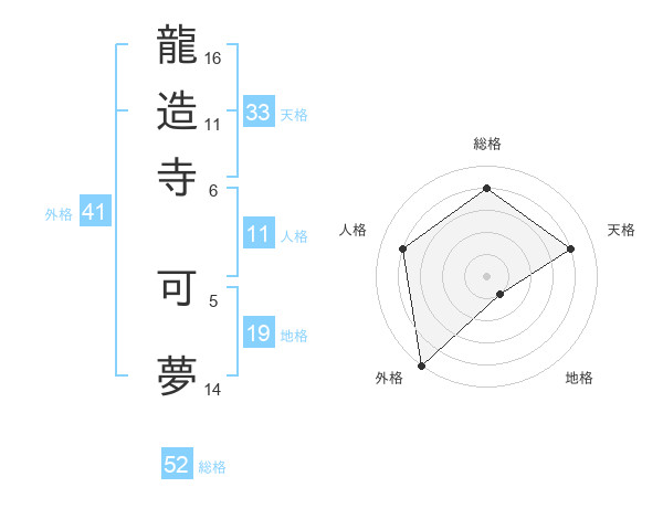 龍造寺 可夢さんの総格は52画の4点!