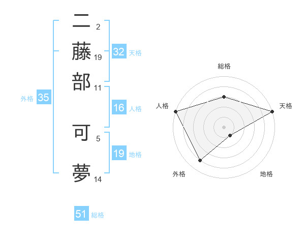 二藤部 可夢さんの総格は51画の3点!