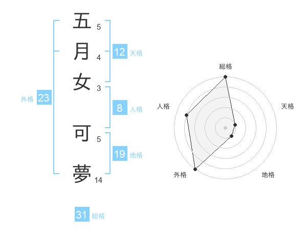 五月女 可夢さんの天格は12画の1点!
