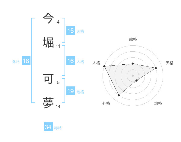 今堀 可夢さんを姓名の画数から五運を鑑定