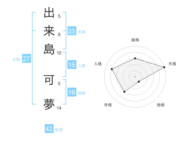 出来島 可夢さんを姓名の画数から五運を鑑定