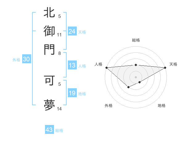 北御門 可夢さんを姓名の画数から五運を鑑定