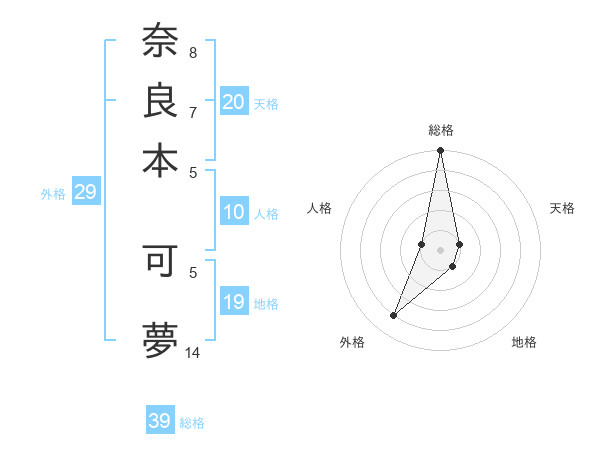 奈良本 可夢さんの総格は39画の5点!