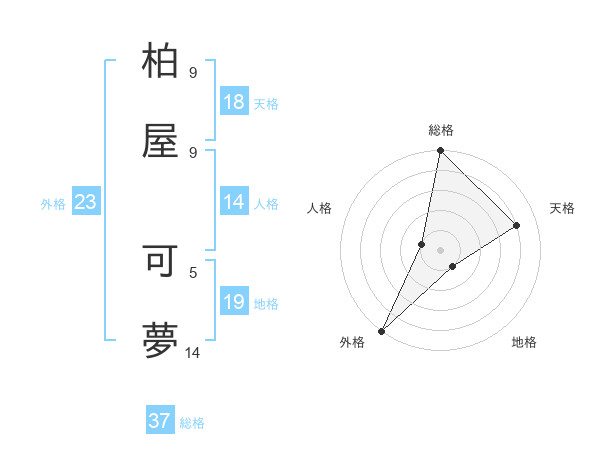 柏屋 可夢さんを姓名の画数から五運を鑑定