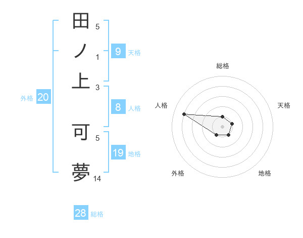 田ノ上 可夢さんを姓名の画数から五運を鑑定