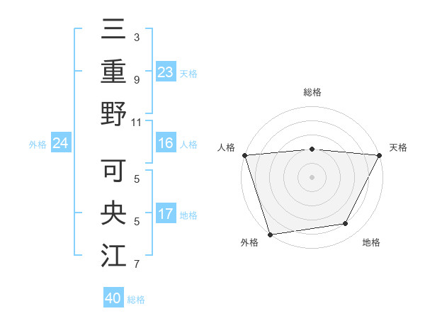 三重野 可央江さんの外格は24画の5点!