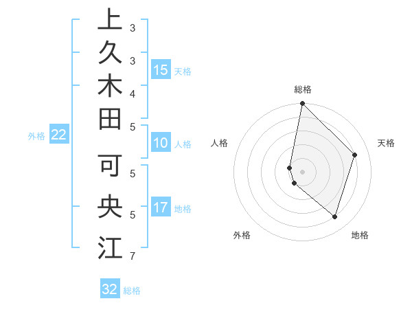 上久木田 可央江さんを姓名の画数から五運を鑑定