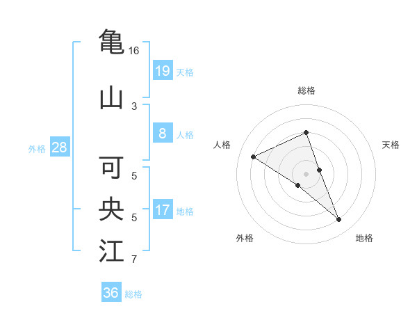 亀山 可央江さんの天格は19画の1点!