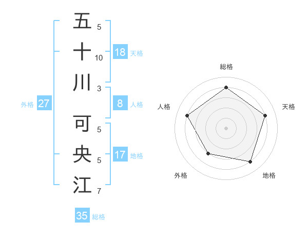五十川 可央江さんを姓名の画数から五運を鑑定