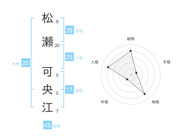 松瀬 可央江さんを姓名の画数から五運を鑑定